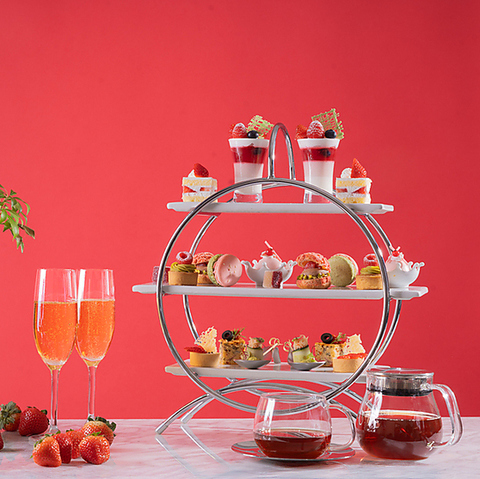 アフタヌーンティーでは旬のストロベリーを使ったドルチェとこだわりのセイボリーをお楽しみいただけます。ドリンクはノンアルコールカクテルやコーヒー、紅茶などを幅広くご用意。女子会やデート、特別な記念日にも人気のプランで、思い出に残るひとときを。