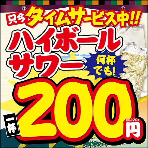 ★タイムサービス中★ハイボール・サワー何杯でも200円!