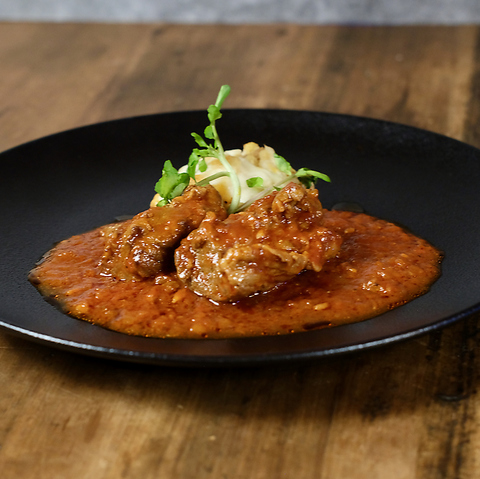 当店のビーフシチューは、上質な赤身肉を贅沢に使用し、白ワインとトマトをベースにじっくりと時間をかけて煮込んだ、お肉たっぷりの逸品です。付け合わせには、ポテトグラタンを添えてご提供いたします。