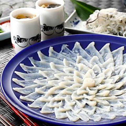 年間を通じふぐを取り扱っている問屋直営店だからこそなせる技。人気の『刺身』はもちろん、体の芯から温まる『ふぐちり』が入った『鍋コース』もオススメです。特別な日を演出するために、旬の食材を活かした料理を提供します。個室は2名から大人数まで対応しており、プライベート感を大切にした空間です。