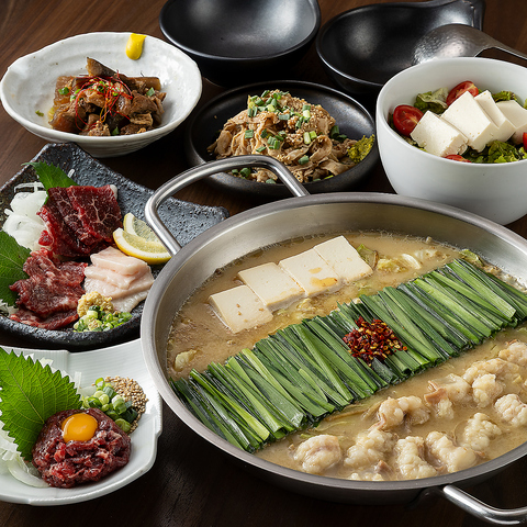 【おおやまコース】自慢のもつ鍋と、新鮮な馬ユッケ、柔らか牛すもつなどおおやま名物が詰まったコース!