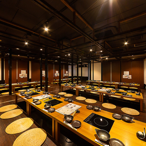 1階フロアのオープン席は2名様~28名様迄ご利用いただけます。全席が堀ごたつとなっており、靴を脱いで快適にお食事を愉しんでいただけます。会社帰りのご宴会や、ご友人同士の飲み会など様々なシーンで当店自慢のもつ鍋をお楽しみください!