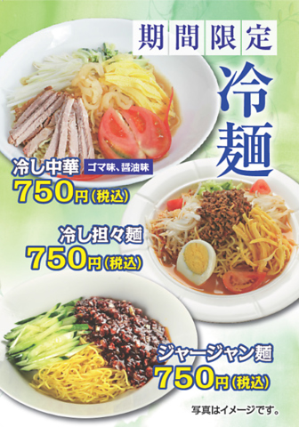 冷し中華、冷し担々麺、ジャージャン麺!!飲みのシメにもおススメです\(^o^)/