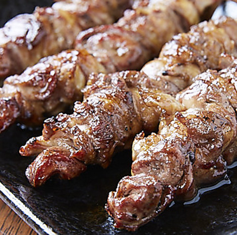 ハツとレバーをつないでいる希少部位「つなぎ」は、お一人様1本限定の当店自慢の逸品です。ぷりっとした弾力と口の中でとろける旨みがたまらない、一度食べたらやみつきになる美味しさなので、ぜひお試しいただきたい一串です♪