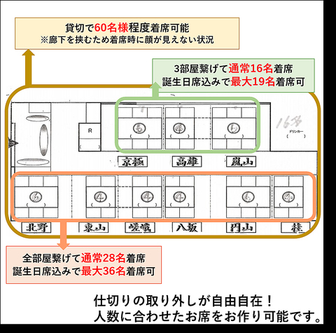 溜池山王駅直結の好立地!40名様から最大60名様まで、貸切受付を承っております!赤坂エリアにて、会社全体での大きなご宴会などにも最適です!飲み放題コースは150分制から!新鮮な山形牛の焼肉と美味しいお酒をたっぷりとご賞味下さい!ご予約受付中です!