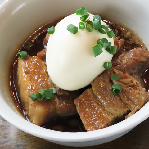 じっくりと煮込まれた豚肉は、口の中でとろけるような柔らかさ。甘辛いタレがしっかりと染み込み、豊かな旨味が広がります。半熟卵を割れば、そのクリーミーな黄身が絡み、さらに深い味わいを楽しめます。青ねぎの香りがアクセントとなり、一口ごとに幸せを感じることでしょう。特別なひとときにぴったりなこの料理、ぜひお試しください!