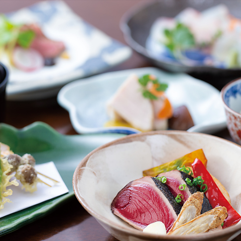 自慢の鰹のたたきをはじめ土佐の旬の食材を会席料理でご用意しました。