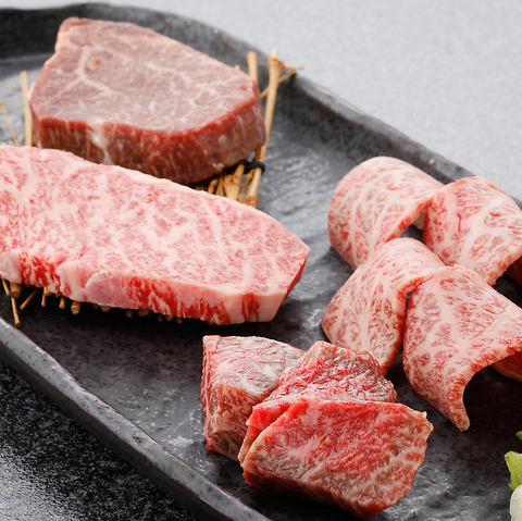 色とりどりの神戸黒毛和牛を、ステーキ、素焼きに特に焦点を当てて作られたインバウンド御用達コースプランです。錦(増量) 19800円(税込み)もあり。