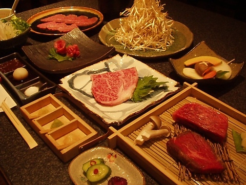 プライベート感覚溢れる半個室は4名様~ご予約が可能になっており、最大14名様までお使い頂ける事が可能となっております。個室はどこか高級感があり、ワンランク上のお食事、ご宴会、また接待にもお使い頂けたらと思います。!最高のお肉を鉄板焼き、焼肉、すき焼きなど様々なお料理でお楽しみください。