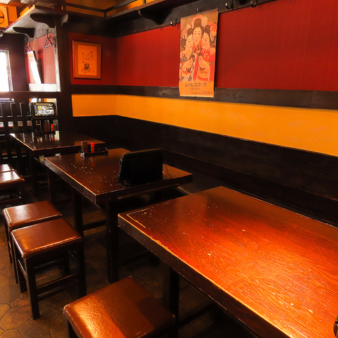 昭和の面影を残す木目の空間と、温かみある照明が印象的なテーブル席。2~4名でゆったり会話を楽しめる配置で、仕事仲間との食事やちょい飲みに最適!新橋で落ち着いた和空間をお探しの方に◎
