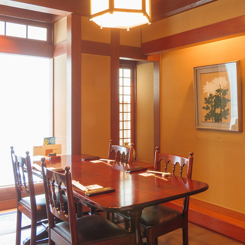 4~6名様までご着席可能なテーブル席個室。襖で仕切られたお部屋は、和の落ち着いた雰囲気が漂います。ご両家のお顔合わせをはじめ、接待・会食などのビジネスシーン、記念日のお祝いなどにぴったりです。大切な方へのおもてなしにふさわしいコースを多彩にご用意しておりますので、ぜひご利用ください。