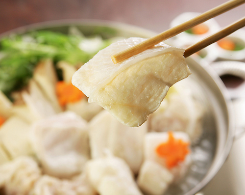 当店のクエはすべて「天然もの」の「真クエ」のみ使用しています。産地の専用生簀から活き締めにして翌日にはお店に到着します。脂の乗りの良さと身の弾力感の違いをご堪能ください!受付時間11:30~13:30・16:30~20:30