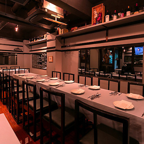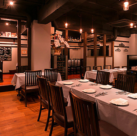 当店の自慢は地下に広がる非日常空間。シックな店内は、ゆったりと寛いでいただけます。いつもよりワンランク上の大人の時間をお過ごしください。大人数様でのご宴会も承ります。貸切は最大50名様までOK!人数などお気軽に店舗までお問い合わせください。