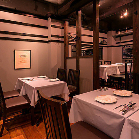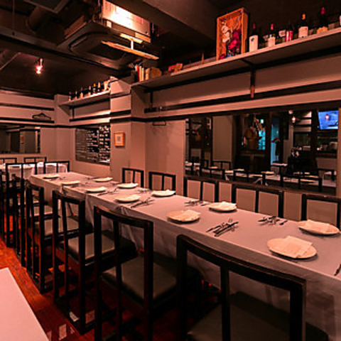 シックな店内は、ゆったりと寛いでいただけます。2~4名掛けのテーブルやカウンター席から、グループ用の大き目のテーブル席があるので様々なシーンでご利用可能です。貸切も承っておりますのでお気軽にご相談ください。