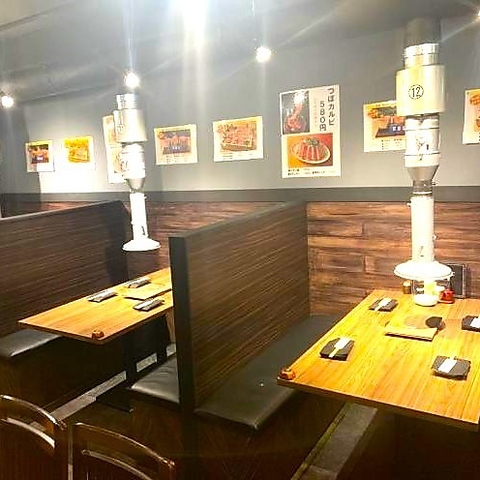 飲み放題と一緒に焼肉をお楽しみいただける店内は、4名様でお座りいただけるお席を数多くご用意。ボックス席もございますので人数に合わせてご利用いただけます。