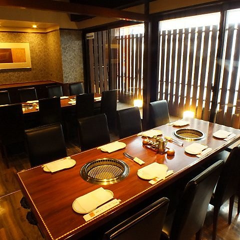 2~4名様向きの3F個室は、ご家族でのお食事から接待まで様々なシーンでご利用いただけるプライベート空間です。落ち着いて会話のできる雰囲気なので、女子だけで愉しむ焼き肉パーティーにもぴったりです。上質なお肉を頂きながら会話に花を咲かせる特別なひとときをお過ごしください。