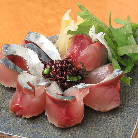 店主イチオシのしめさばは強めの塩でしめています。余分な水分を塩が吸ってくれるため、引き締まった身になり絶品の一品。是非、自慢の日本酒とご一緒にお楽しみください。