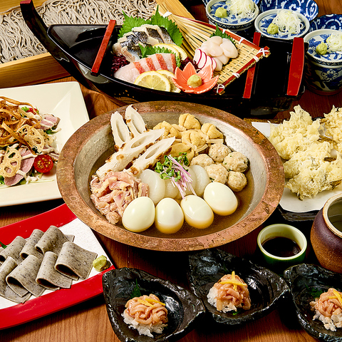 旬の料理と蕎麦が楽しめる宴会コース多数ございます。全ての宴会メニューの〆は、当店自慢のお蕎麦付き!