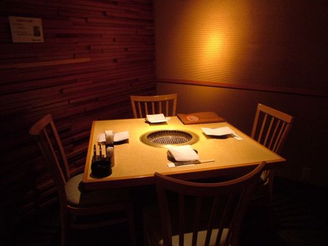皆の顔が見渡せる卓を囲んで、いつもより楽しい焼肉パーティを!実はカップルにも人気のお席★隣り合って座れる♪