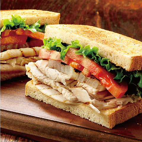 ローストした七面鳥の胸肉を薄くスライスし、溶岩石グリルで軽く炙ってサンドウィッチにしたヘルシーな一品。