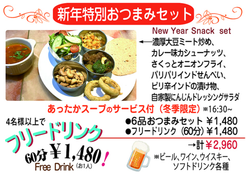 【新年限定】ナタラジおすすめメニュー6品がリーズナブルにお楽しみ頂けるおつまみセット1480円(税込)