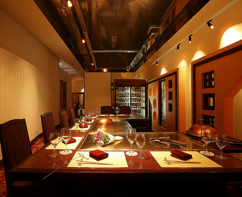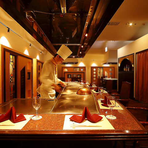 | テーブル | 4名様×3 | 各テーブルも目の前で鉄板焼きが楽しめます。 |