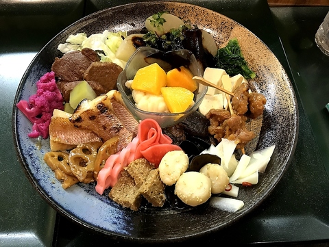 刺身三点盛り、自家製薩摩揚げ、アジ南蛮漬け、舞茸天ぷら、玉葱かき揚げ、特選おでん、叩きキュウリ、荒煮等、当店シェフが腕を振るってお作りした逸品料理の品々をご堪能頂けます。新鮮で上質な旬の食材を生かした季節感溢れるお料理を是非お楽しみ下さい。