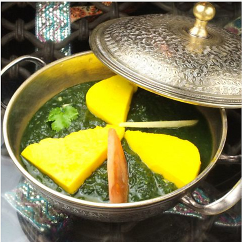 インド風カッテージチーズが入ったほうれん草ベースのベジタブルカリー
