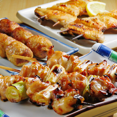 国産銘柄鶏の中でも人気の純然鶏を使用し、串の打ち方から火入れまで1本1本丁寧に仕上げられた逸品。職人の技が光る絶妙な焼き加減がたれの香ばしさと鶏本来の味わいを引き立てます。人気のねぎ間をはじめボリューム満点の自家製軟骨入りつくねもおすすめです。是非ご賞味ください。