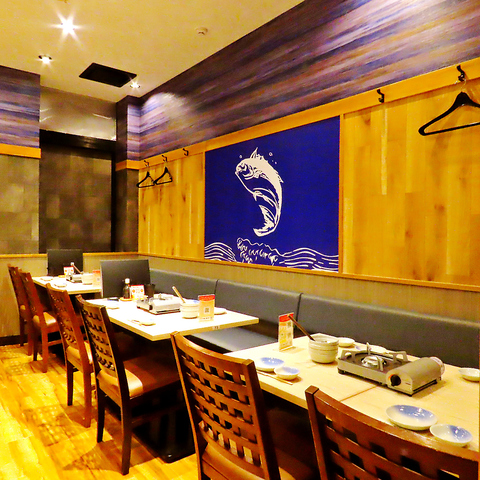 【大小さまざまなお席をご用意】店内は温かみのある明かりで雰囲気抜群♪気の合うお友達との飲み会や女子会などにぜひご利用ください。お席は人数に合わせてご用意できます。ご相談ください!新鮮な海の幸を味わいながら、ゆったりとおくつろぎください。