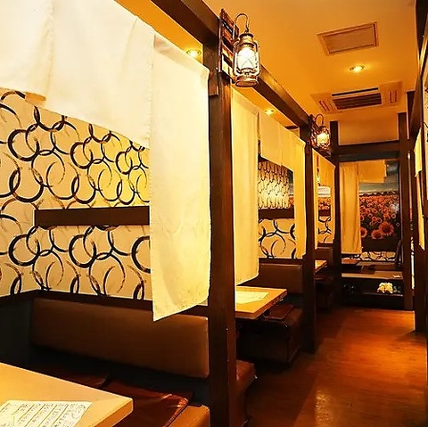 各テーブルはのれんで仕切られており、個室風なので、周りを気にせずお楽しみいただけます★