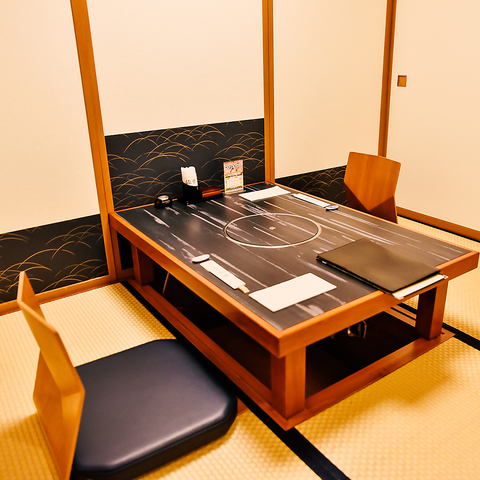 個室は少人数の4人から対応。掘りごたつの完全個室を最大30人まで大小ご用意。記念日コースは2名でもOK