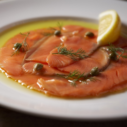 濃厚な味わいのスモークサーモンはシンプルにオリーブオイルとレモンで!