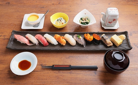 毎朝市場より厳選したネタを仕入れ、熟練の職人が丁寧に握ります。出汁の効いた繊細な和食と鮮度抜群の寿司が両方楽しめるコース料理は、様々なシーンでご満足いただけること間違いなし!また、厳選した地酒や焼酎など、お料理の美味しさを引き立てるドリンクも豊富にご用意しております。