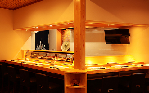 一階のカウンター席は7名様までご利用いただけます。職人の手捌きを目の前で楽しめる特等席です。お一人様や少人数でのデートに最適で、新鮮な握りを出来立てでお召し上がりいただけます。極上の寿司を心ゆくまでご堪能ください。