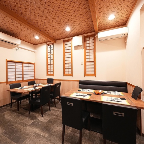 一階にある6名様用テーブル席は、職場の同僚とのご会食や、親戚とのお集まりに最適です。周りを気にせず落ち着いてお食事を楽しめるため、商談や接待など、大切なビジネスシーンにもご利用いただけます。