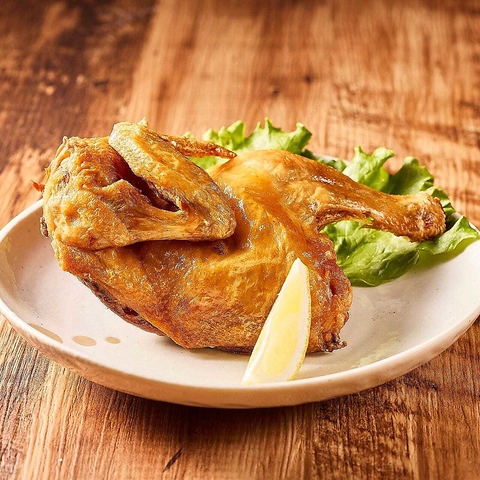 つぼ八不動のの大人気メニュー!!熱々ジューシーな若どりから溢れる旨味は、一口で虜に。サクッと揚がった衣とジューシーな中身の絶妙なバランスがたまりません。ぜひご賞味ください!