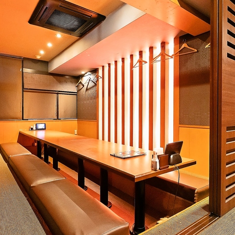 男の大人飲み会にも是非♪人目の気にならない個室席♪掘りごたつのお席は足元もゆったりとしてごゆっくりとお寛ぎいただけます。お得な飲み放題付きのコースもご用意致しております。