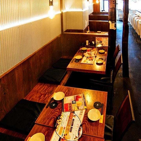 4名様席×5卓ご用意。壁側はベンチ式で席にゆとりがあり、ゆったりと座れますので隣席と合わせてご利用いただけます!大人数、少人数様気にせず気軽にご来店下さい!