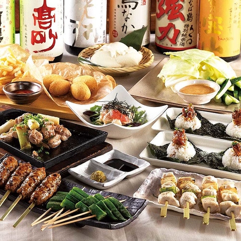 飲み放題付宴会コースは金土祝前2.5時間・平日3時間!牛ロース串・つくね鉄板焼きコースをはじめ、3種の鍋から選べるコースはミルフィーユ鍋・水炊き鍋・鶏すき焼き鍋から1種と選べて、鶏炙り刺しや串3種等がお楽しみいただけます。幹事様無料クーポン等おトクなクーポンも要チェック!