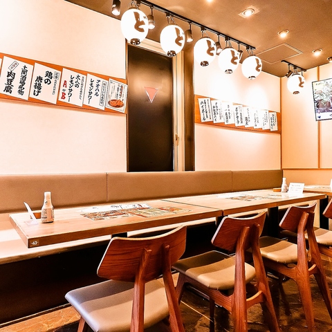 プライベートな宴会や会食に利用しやすい居酒屋として、テーブル席をご用意。周囲を気にせず料理や飲み放題を堪能でき、会話も弾む落ち着いた雰囲気。幹事様にも選ばれる、居心地の良い空間となっています。