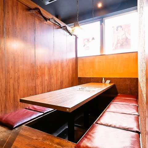 【4名様~8名様向けのテーブル席】温かみのある照明で落ち着いた雰囲気を演出しております。周りが仕切られたBOXのお席なら、人目を気にすることなくお楽しみいただけます。