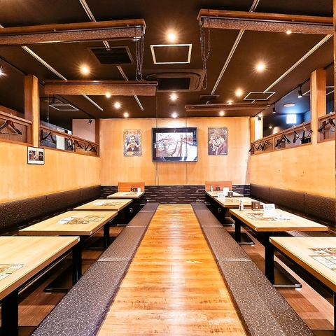 大人数での宴会に最適な居酒屋として、広々としたテーブル席をご用意。飲み放題付きコースも充実しており、貸切での利用も可能です。設備や環境が整っているので、幹事様が安心してご予約いただけます。