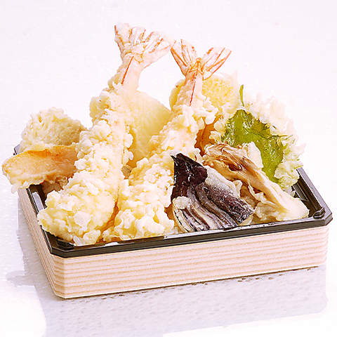 海老2本付き海老天はぷりぷりの海老を使用しています。大穀特製の天重のタレをかけてお召し上がりください。