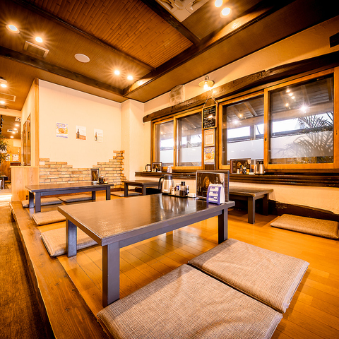 【人気のお座敷】足をのばしてゆったりとくつろげるので、家族や大人数での集まりに最適です。お子様用の椅子もご用意しており、小さなお子様連れのお客様も安心してご利用頂けます。。テーブルをつなげれば最大20名様まで対応可能。貸切や宴会、接待、デート、カジュアルなお食事など、様々なシーンでご利用いただけます。
