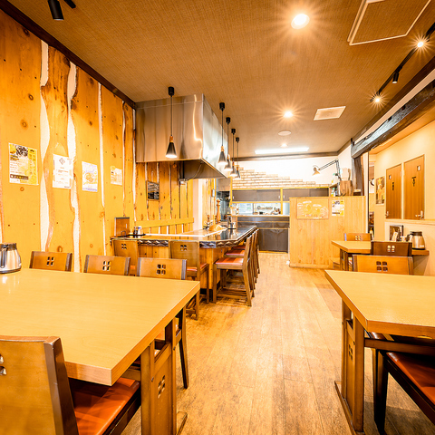 4人掛けのテーブル席は、友人や家族との楽しいひとときを過ごすのに最適なスペースです。広めのテーブルが設けられており、ゆったりとした配置で、快適にお食事をお楽しみいただけます。