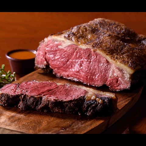 プライムサーロインテーキを数量限定で提供!国産牛のサーロインの部位を低温でじっくりと焼き上げた、厚切りでお楽しみいただくローストビーフ。柔らかく、ジューシーで肉本来の味を楽しめる一品です。提供日については店舗へお問い合わせください。