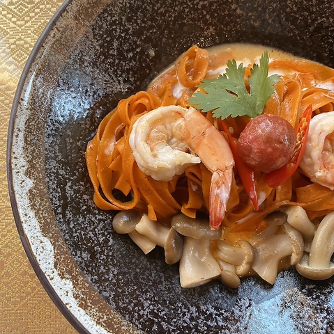 タイ料理×パスタはバンコクで人気高騰中!日本で味わえるのはシアムハウスだけ!!味はガパオ・グリーンカレー・トムヤムクン・カオソーイ!