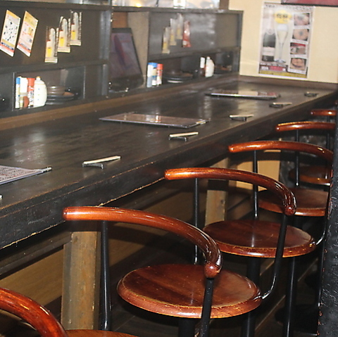 【テレビ付きカウンター席】おひとり様からでもお気軽にお立ち寄りください!ダークな木材で統一、シンプルで落ち着いた雰囲気がゆったりくつろげると大好評。