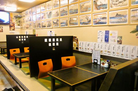 店内の壁面には天才絵師・歌川広重の東海道五十三次の浮世絵がたくさん飾られていて落ち着ける雰囲気がただよう。